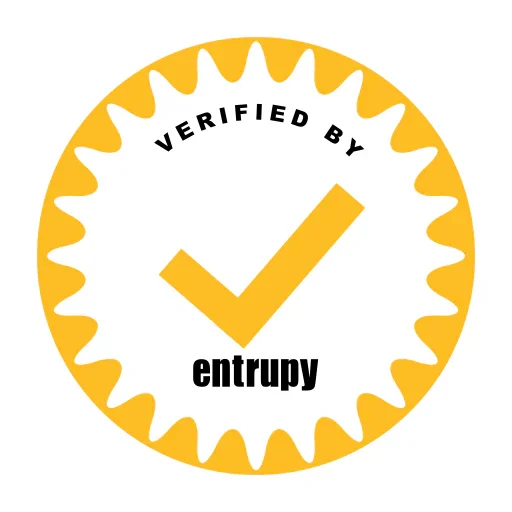 A badge with a yellow check mark inside a circular border, with text "VERIFIED BY entrypy" around the top and bottom.
